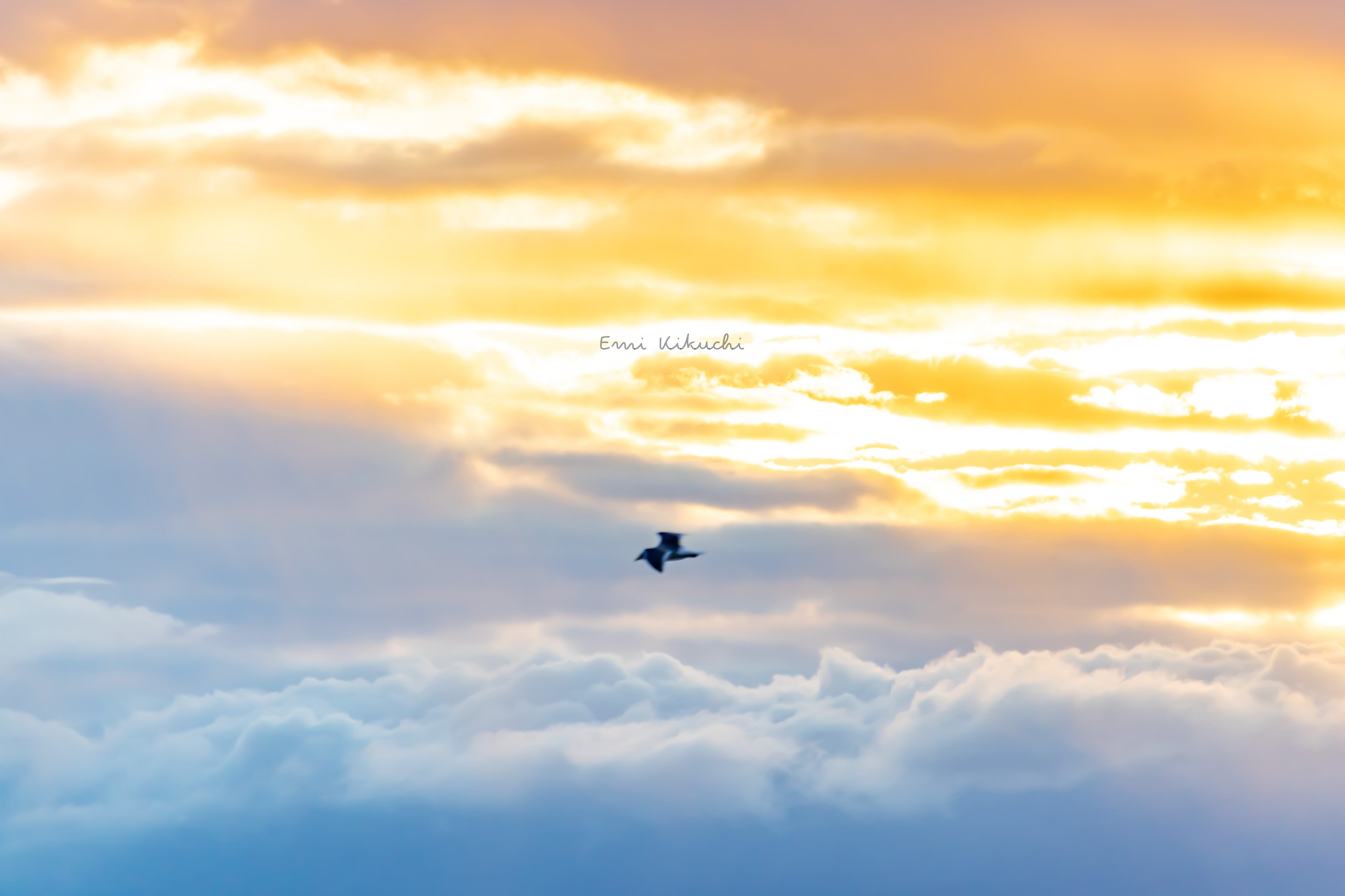 とりわけ綺麗な夕暮れだったこの日に、苫小牧沖を飛んでいたオオセグロカモメ。